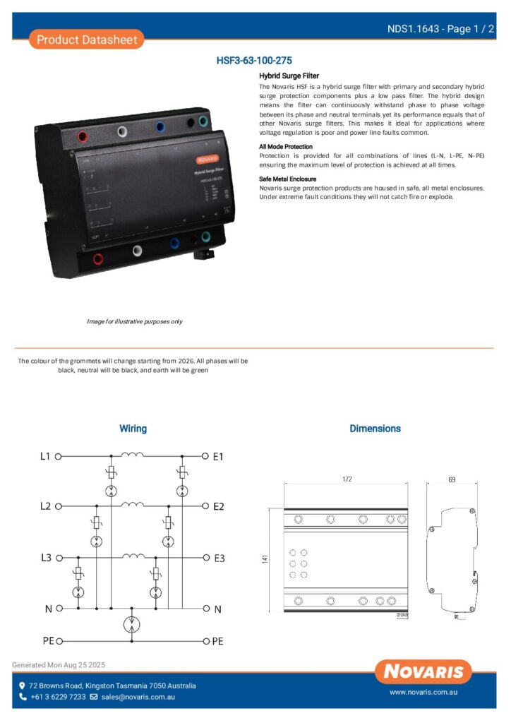 HSF3-63-100-275 – Product Datasheet (NDS1.1.1643)