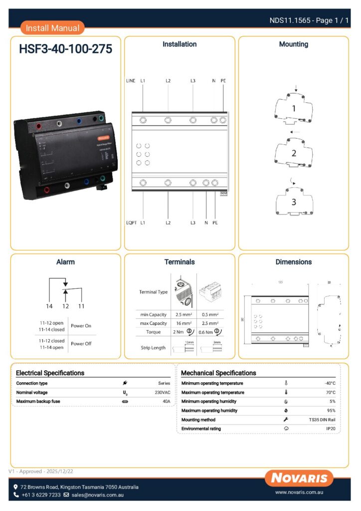 HSF3-40-100-275 – Install Manual (NDS11.1565 V1)