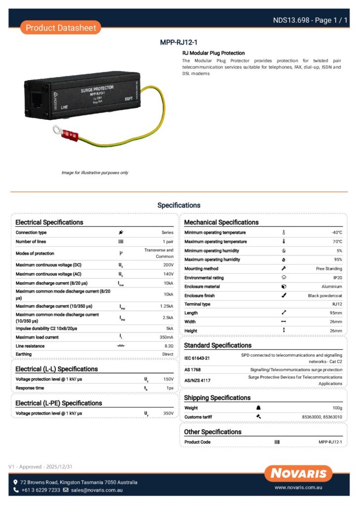 MPP-RJ12-1 – Product Datasheet (NDS13.698 V1)