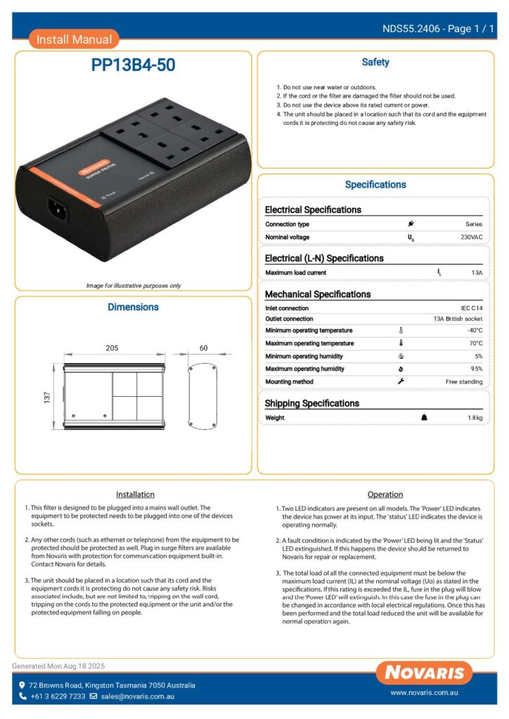 PP13B4-50 – Product Datasheet (NDS67.67.2406)