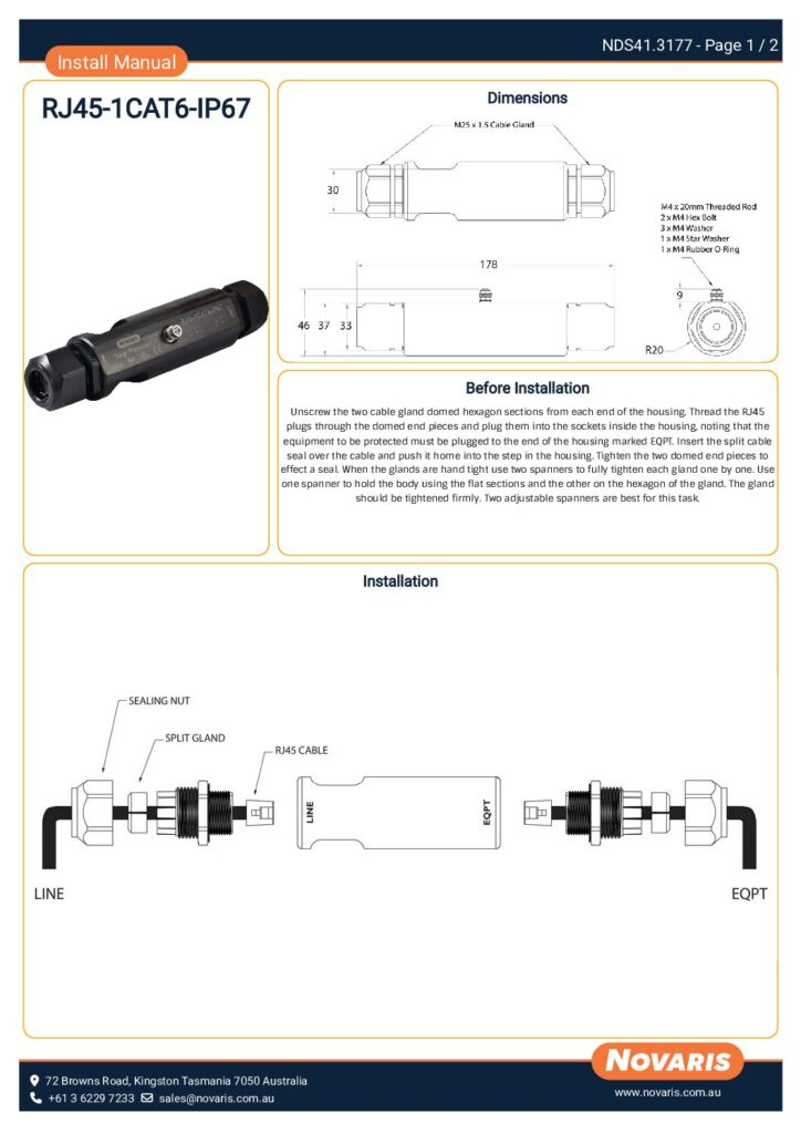 RJ45-1CAT6-IP67 – Install Manual (NDS41.3177 V1)