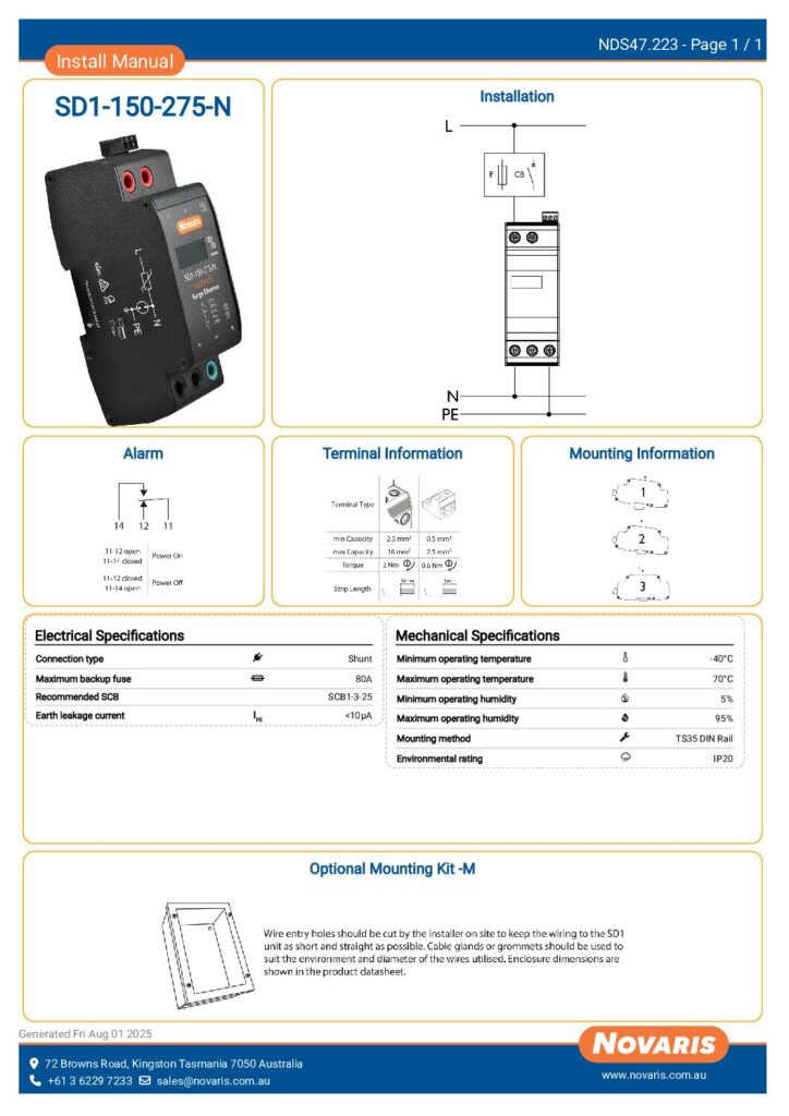SD1-150-275-N – Install Manual (NDS47.47.223)