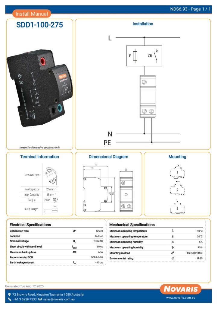 SDD1-100-275-A – Product Datasheet (NDS1.1.138)