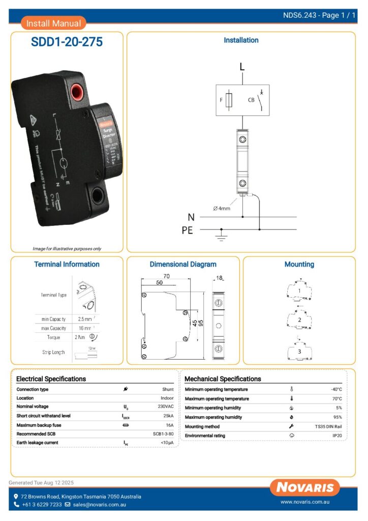 SDD1-50-275-A – Product Datasheet (NDS1.1.140)