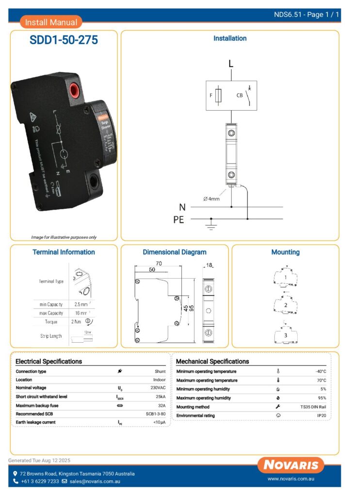 SDD1-50-275 – Product Datasheet (NDS1.1.51)