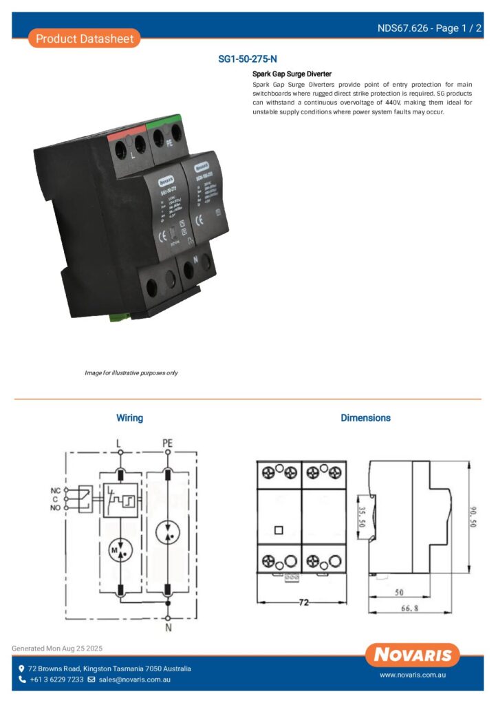 SG1-50-275-N – Product Datasheet (NDS67.67.626)