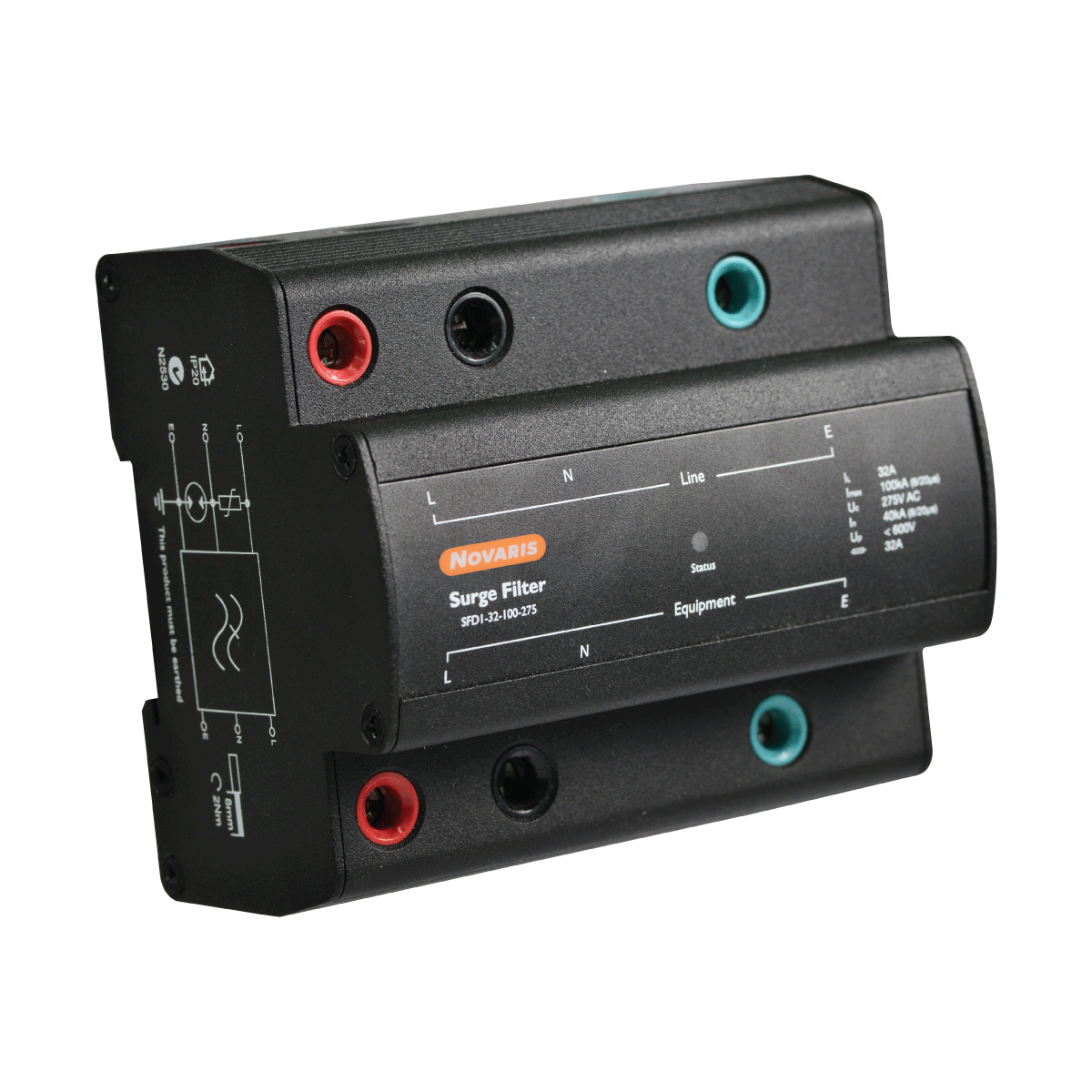 Novaris SFD Single Phase Surge Filters provide the highest level of protection for critical and essential equipment. The internal configuration has three stages of protection to ensure the lowest level of let-through voltage possible, making them the ideal choice for sensitive electronics and computer equipment. They are available for circuits from 6A up to 32A.