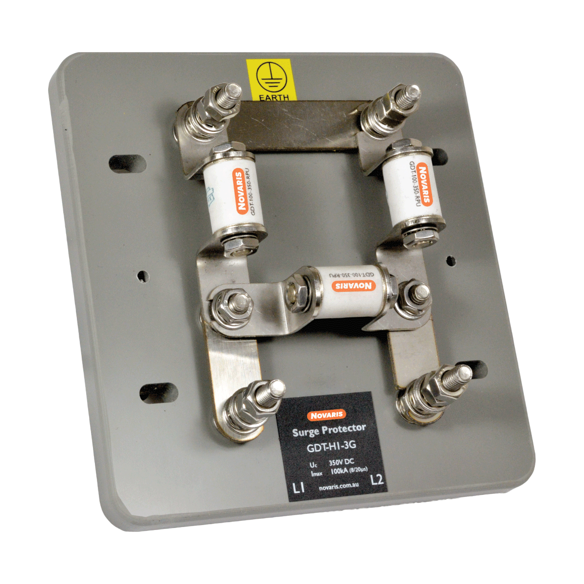 The Novaris GDT-H1-3G and GDT-H2-6G provide protection for track circuits. These units utilise fast acting, high energy gast discharge tubes. These provide a replacement for early technology air gap and MOV components. These are used for railways track circuits and connect directly to the conductors from the rails. Panels without gas tubes are available as GDT-H1 and GDT-H2.Gas tubes are available as GDT-100-350-RPU.