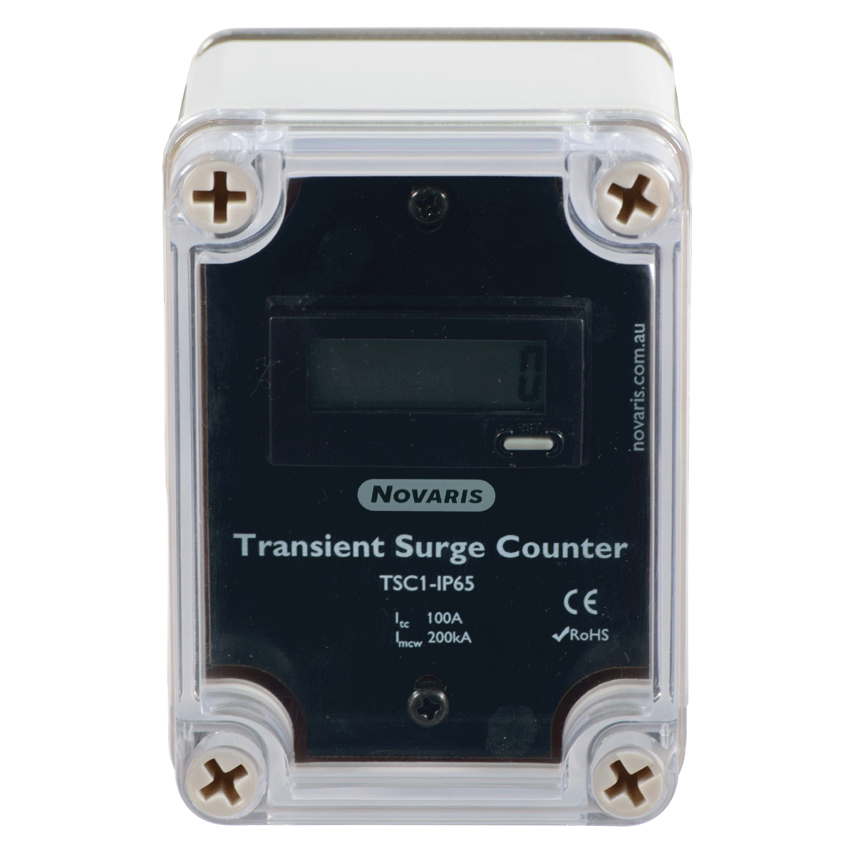 Novaris Transient Surge Counters count direct lightning strikes and transient events. They may be clamped to the downconductor of a building, tower or in the earth return conductor of a SPD.